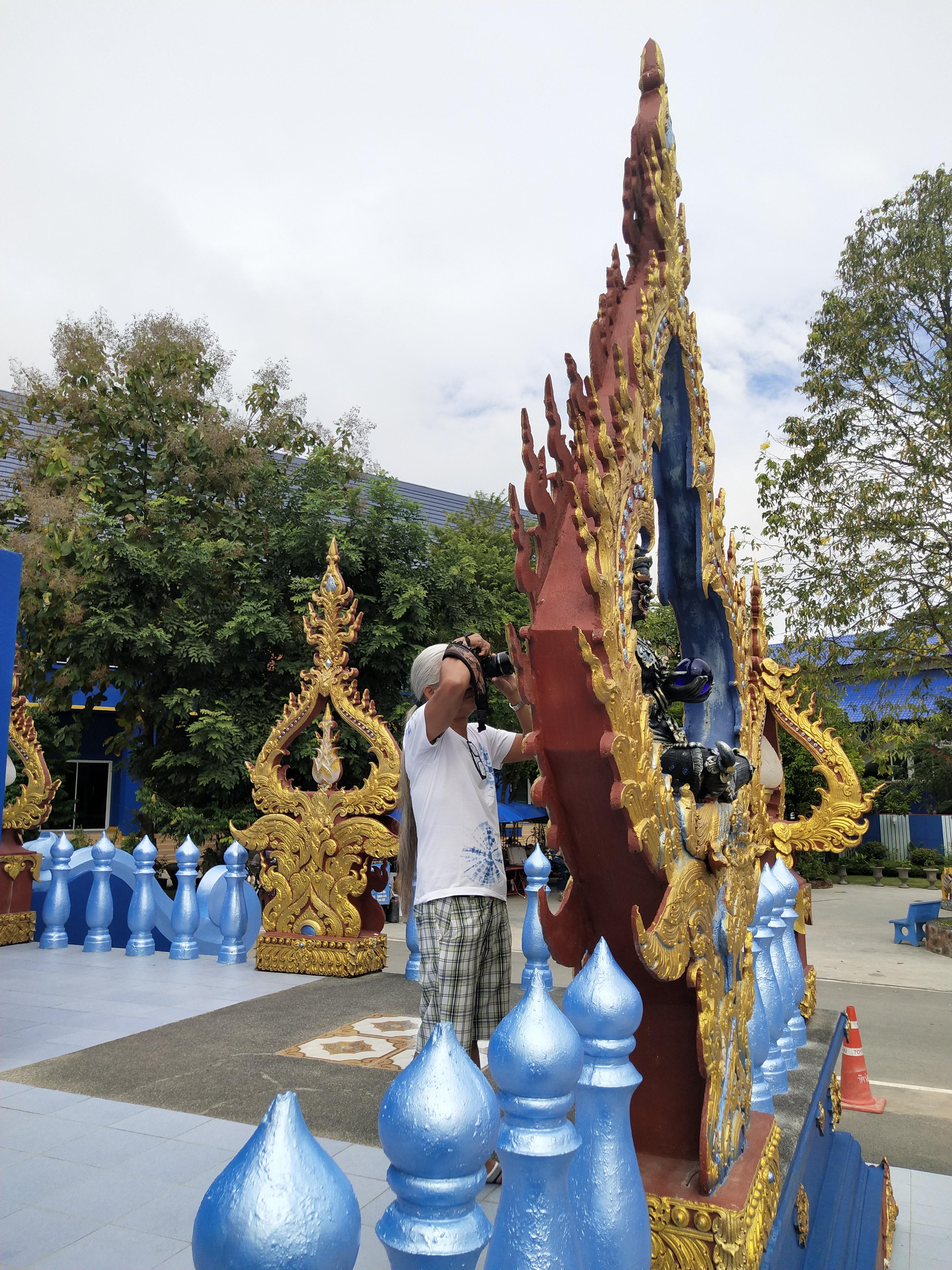 Chiang Rai Blue Temple or Wat Rong Seua Ten is located in Rong Suea Ten in the district of Rimkok a few kilometers outside Chiang Rai. It is a recent temple that is still under construction even if its main hall is now completed. It is above all its magnificent blue interior with a large white Buddha that marks the spirits. The paintings are reminiscent of the style of what you can see inside the White Temple (Wat Rong Khun). The great standing Buddha, also white, standing in front of the back, is also superb. etween the White Temple, the Black House and the Blue Temple, Chiang Rai is definitely the city of colorful temples! ”Suea Ten” literally means the dancing tiger. Here, there were tigers who used to jump over the river. This is how the name of Rong Seua Ten village was find. At the present temple location, there was a ruin of an temple abandoned 80 to 100 years ago. In 1996, the villagers decided to rebuild a temple here. The construction started in October 2005, the White Buddha was completed in 2008 while the main hall was only completed on 22th January 2016. The Blue Temple of Chiang Rai is not very known among tourist for now because it was completed very recently but no doubt it will become more and more famous and will welcome more and more people in the coming years.